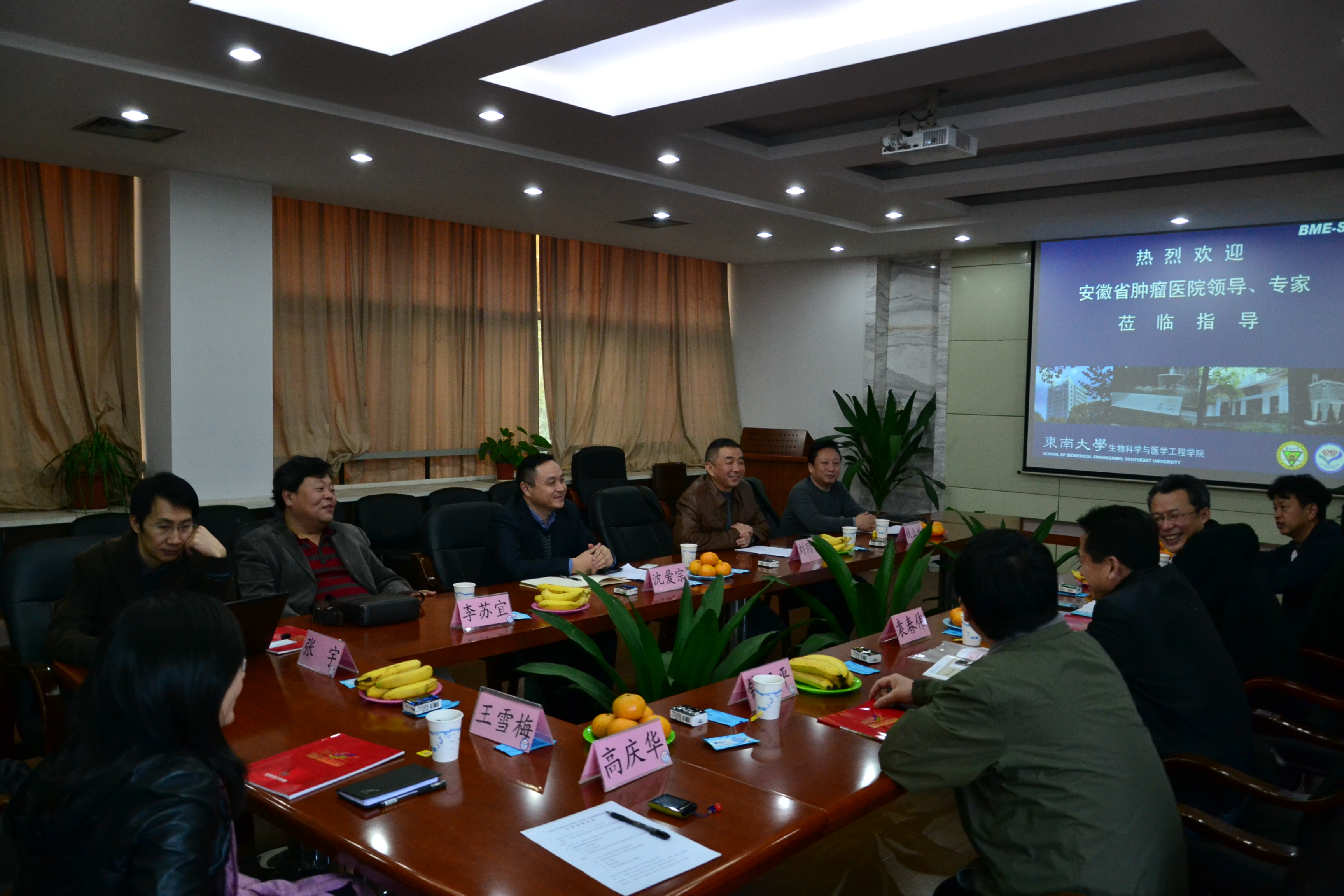 学院主要领导首先向客人介绍了学院基本情况及相关学术领域的研究进展,钱卫平教授、张宇教授、王雪梅教授分别介绍了各自的研究工作,刘同柱院长介绍了安徽肿瘤医院及安徽省立医院的发展情况,表明了人才和科研合作的需求,宾主双方就今后开展人才培养、科研合作等达成了良好的共识。(生音)