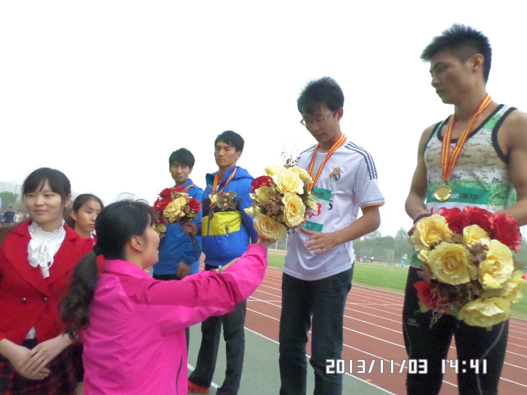 赵新雷同学代表我院领取奖牌 运动场上奔跑的健儿