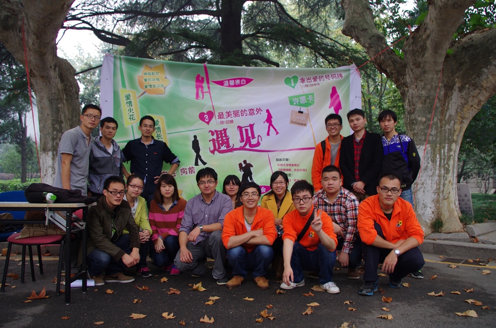 2013年11月9日下午一点,玄武湖畔樱洲,土木工程学院研究生会成功携手生医学院研究生会共同举办了“遇见”系列主题联谊活动。“遇见”是土木工程学院研究生会在每个秋季学期主打的校园联谊活动,搭建了土木学院与其他院系、甚至兄弟院校的交友、联系平台。有多个学校不同院系的近百名同学参与了遇见的“向左向右 向前”活动。