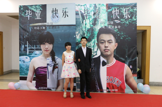 晚会开始前的序章便是象征着毕业与成长的走红毯,走过红毯走过如歌的岁月。同学们陪着恋人、朋友、闺蜜一双双地走过红毯,在签名墙上留下自己的名字留下永远的纪念。