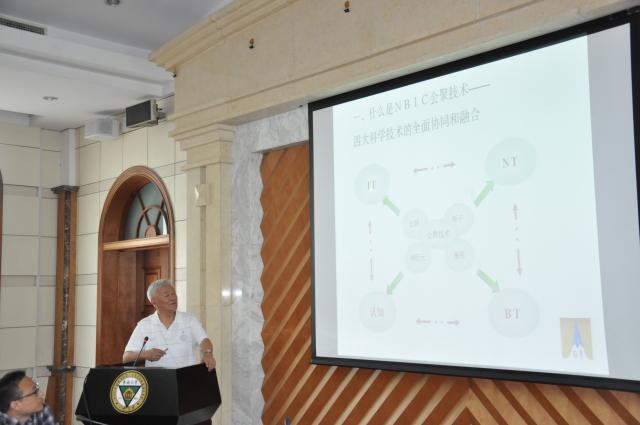解院士做了题为“会聚技术和可能的应用”的报告,解院士思维敏捷,讲话妙趣横生,高屋建瓴的指出了纳米技术相关领域的发展思路和远大前景,如纳米医学要注重实际应用,纳米材料用于疾病检测时要慎重考虑环境复杂性等,对我院各位老师和研究生在纳米相关领域的研究工作具有实际的指导意义。会后解院士还与生医学院教师进行了座谈,就老师们的一些科研思路和问题进行了探讨和指导,使教师们获益匪浅。