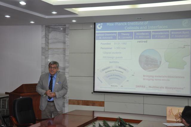 授聘仪式结束后,Helmuth Möhwald教授作了题为《Polymer/Inorganic Composite Interfaces: From Plasmonic Sensing to Responsive Cellular interactions》的学术报告。