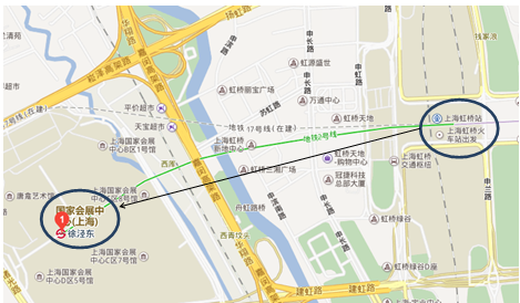 从南京乘火车至“上海虹桥火车站”→乘地铁2号线到徐泾东站(1站地)→出站后可从4、5号口出地铁至会展中心。