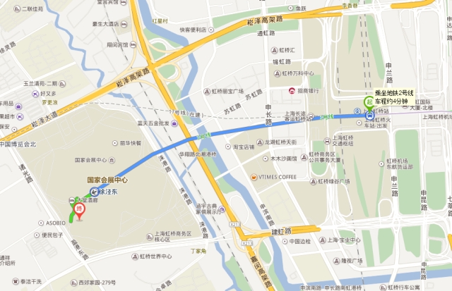 自上海虹桥火车站乘2号线地铁至 “徐泾东”站,出地铁4号口;