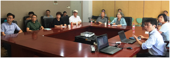 图2: 叶澜教授一行听取实验室情况介绍
