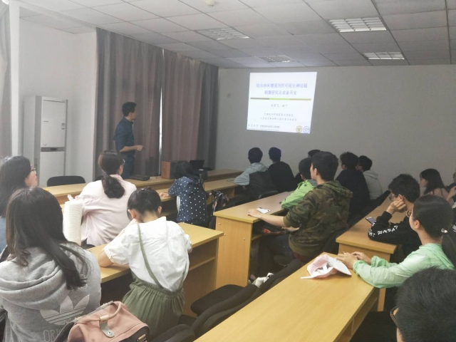 本次会议的项目来自生医学院顾宁教授团队,主题为“结合纳米增强剂的可视化神经磁刺激研究及装备开发”,宣讲会由孙剑飞老师主讲。似火的骄阳未能挡住同学们的热情。尽管正值正午,依然有不少同学来到会议室听取孙剑飞老师的讲解。孙剑飞老师首先介绍了项目的概况并划分了学生团体在这个项目中的主要任务,将“挑战杯”这一大的概念具体到了同学们需要落实的每一件事情上。接着,孙剑飞老师向同学们介绍了前人工作存在的不足之处,以及本项目的优势所在。老师风趣的讲解,与生动的PPT完美地结合了起来,使得整场宣讲会的氛围轻松而愉快。层层递进的概念,与深入浅出的分析,让同学们慢慢明白了自己在团队中应该扮演怎样的角色,以及怎么进行具体的工作研究。