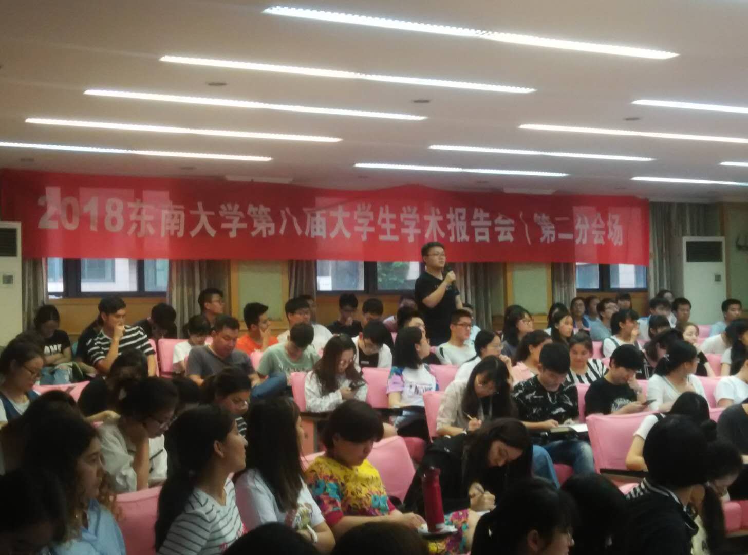 2018年5月14日晚六点,由东南大学教务处主办、生医学院承办的东南大学第八届大学生学术报告会(第二分会场)在丁家桥校区学术报告厅举行。来自全校的一百余位学生参加了报告会,报告会由来自生医学院的陈阳天同学主持。