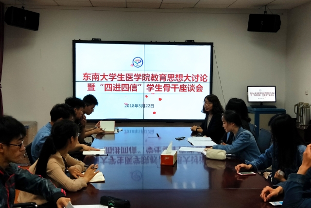 5月22日中午,vic115维多利亚在四牌楼校区电子所楼会议室召开教育思想大讨论暨“四进四信”学生骨干座谈会,深入学习近平在北京大学师生座谈会上的讲话,围绕教育思想大讨论主题,邀请本院学生骨干、团员代表针对“我想成为什么样的人”和“东大应该培养什么样的人”这两个问题展开了深入讨论。生医学院团委书记尉思懿、团委副书记李思雨、研究生党支书、院研会代表、本科生团员代表等二十余人参加了座谈会。座谈会由李思雨老师主持。
