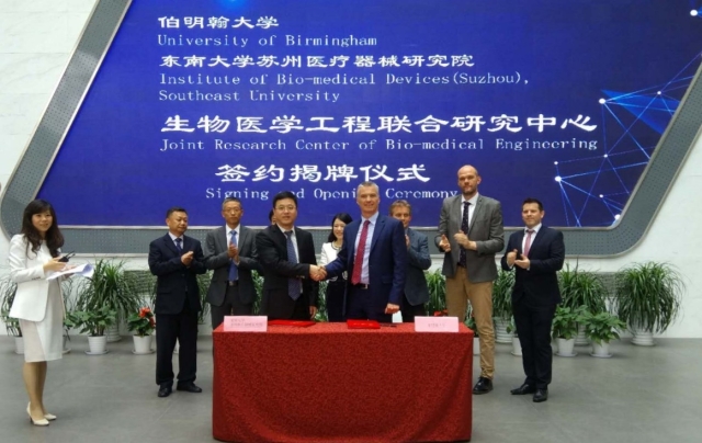 5月25日,英国伯明翰大学常务副校长Tim Jones、副校长Jon Frampton一行访问东南大学。东南大学常务副校长王保平、副校长吴刚分别在南京和苏州会见了伯明翰大学代表团一行,并签署全面战略合作协议、共建生物医学工程联合研究中心,开启了以生命健康大数据为核心的全面战略合作。