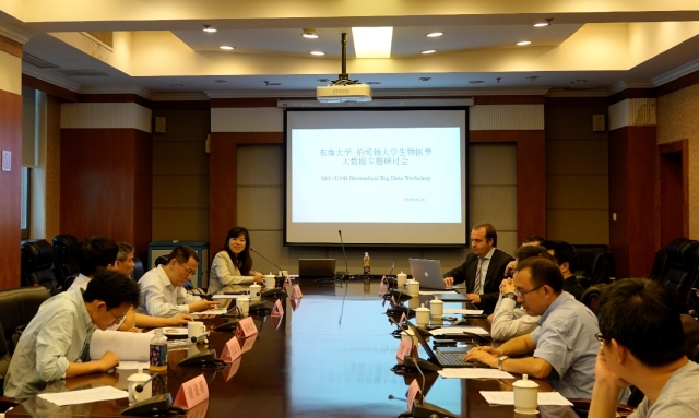 又讯,5月26日,东南大学与英国伯明翰大学在东南大学四牌楼榴园宾馆东大厅举行“东南大学-伯明翰大学生物医学大数据专题讨论会”,会议邀请了伯明翰大学生物计算中心的英国顶级大数据专家Jean-Baptiste Cazier和Georgios V. Gkoutos教授就生物医学大数据研究建设,并与东南大学陆祖宏、陶纬国、万遂人、孙啸、顾万君、孙钰等相关教授学者进行了交流与探讨。会议还邀请了上海联影相关专家参加。会议由东南大学-伯明翰大学生物医学工程联合研究中心联席副主任、生医学院院长助理孙钰教授主持。与会专家进行了深层次交流,对报告内容进行了热烈的讨论,就下一步合作的相关事宜进行讨论和落实,并达成了良好共识。