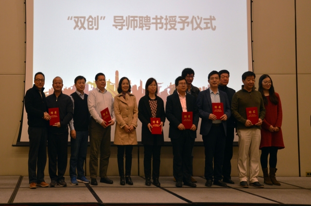 东南大学教务处沈孝兵副处长宣布了《关于东南大学授予吴小页等“双创”导师的通知》,并进行了授聘仪式以及合影留念。