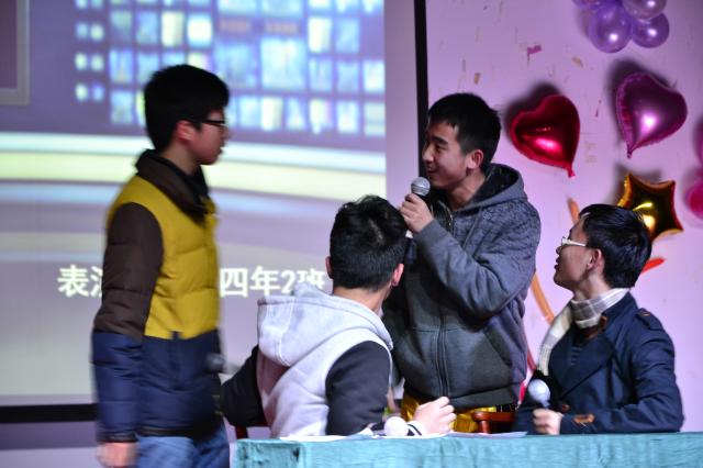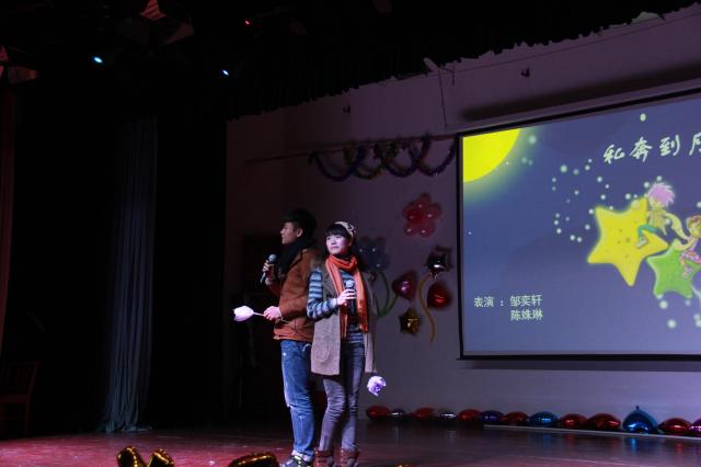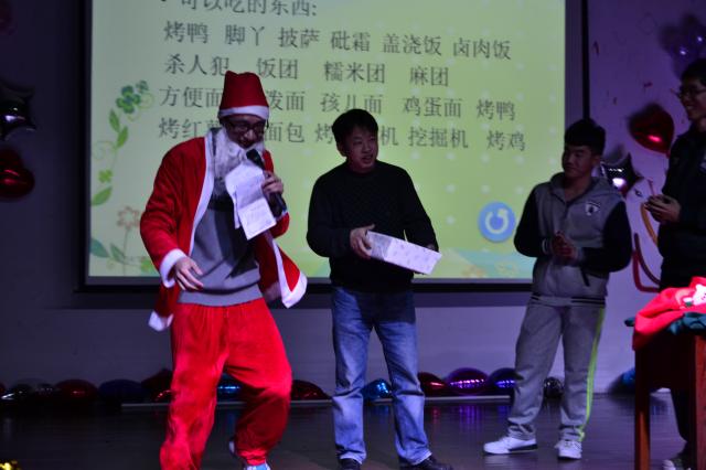 当晚,随着强劲的音乐声响起,晚会在我院研一同学激情的开场舞《小苹果》中拉开了帷幕。院长顾忠泽教授代表学院热情致辞,对2014年的工作和科研成果进行了总结,并对2015年进行了展望。歌舞、小品、乐器联奏、武术等精彩的节目为观众呈现了丰盛的视听盛宴。来自大一大二同学表演的街舞《Beat it》动感十足,引人入胜;由2014级新生自编、自导、自演的小品《学摔跤》笑料百出,精彩纷呈;大一同学带来的啦啦操表演充满了激情与活力,将晚会引向了高潮;博士生陈莹为晚会带来了节奏感十足的舞蹈《因为爱情》;大一七年一班同学带来的双截棍表演力量十足,赢得了观众的喝彩;由研一同学带来的集体舞《爱的华尔兹》展示着优雅与浪漫。整场晚会精彩不断,高潮迭起,赢得台下阵阵掌声,欢呼声一浪高过一浪。期间更有扮作圣诞老人的主持人带着大家进行游戏环节,主持人幽默的主持词和充满趣味的游戏为台下的观众带来了阵阵欢笑。每个参与游戏的老师和同学都获得了精心包装准备的奖品。一首《Memory》为本场晚会划上了圆满的句号,美妙的歌声饱含着大家对2015年的美好期望和祝福。最后,领导、嘉宾与工作人员及演员合影留念。